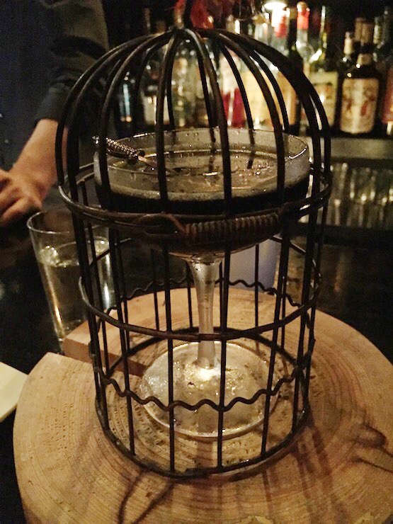 它是如何調制的?將調和型威士忌、猴王47黑刺李金酒、檸檬汁、蜂蜜和竹炭粉搖勻,倒入雞尾酒杯中。用一顆櫻桃裝飾,最后別忘了在酒杯上罩上一個鳥籠再上桌。
