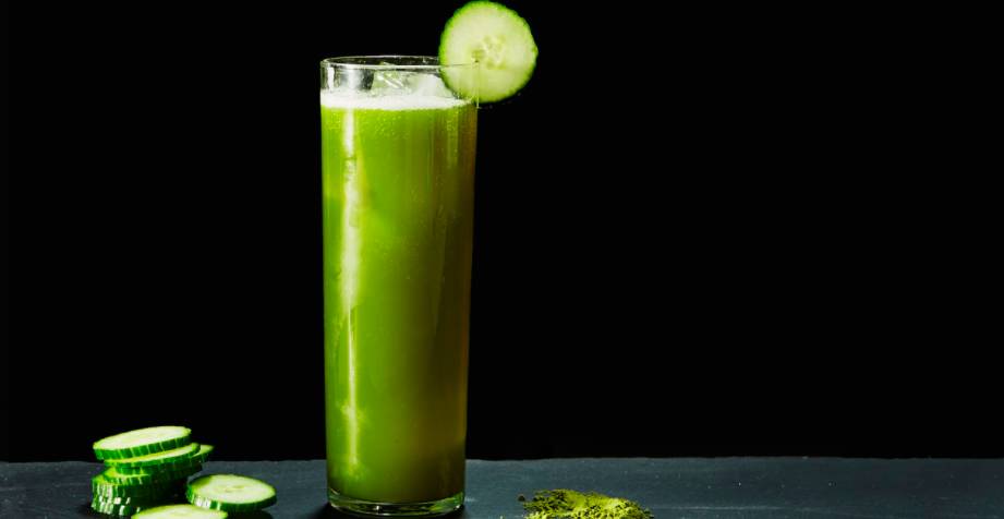 在科林斯杯中倒入伏特加,冰塊,糖漿和并抹茶,澆上蘇打水后進行攪拌,并用黃瓜片裝飾。