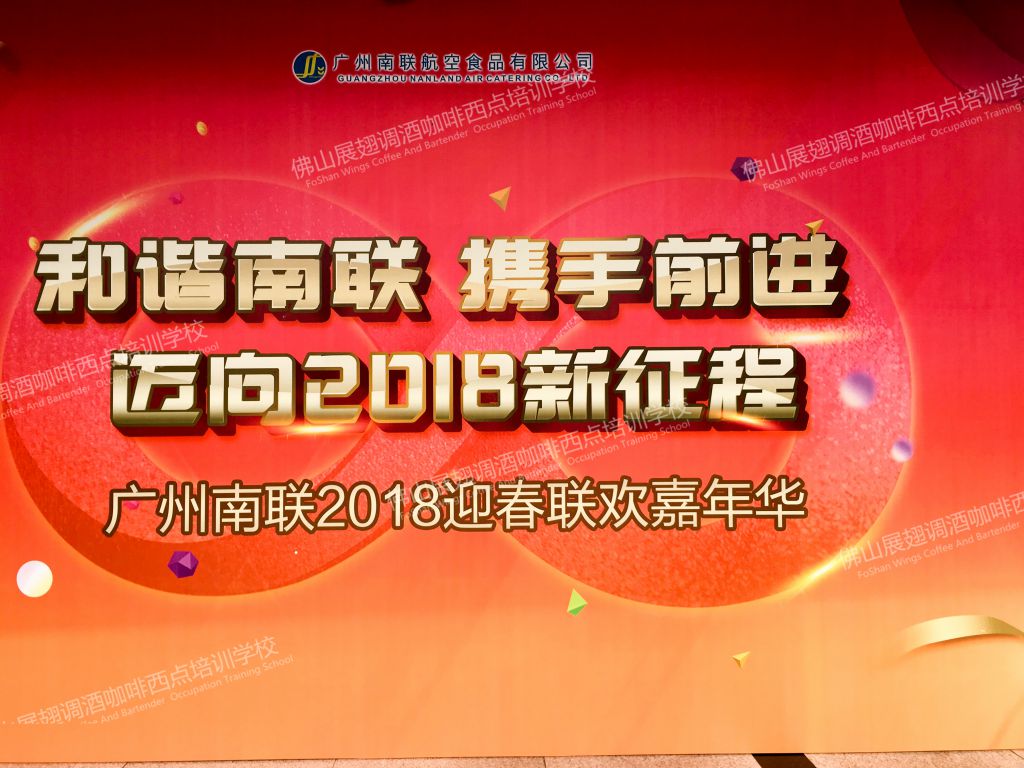 一年一度的年會陸續進行中 和諧南聯,攜手前進,邁向2018新征程,廣州南聯2018迎春聯歡嘉年華,展翅學校又一次被邀請作為演出嘉賓,擔任此次花式調酒演出嘉賓的是我們熟悉的朱歡洪老師,下面就讓我們一起回顧當晚的精彩演出吧!