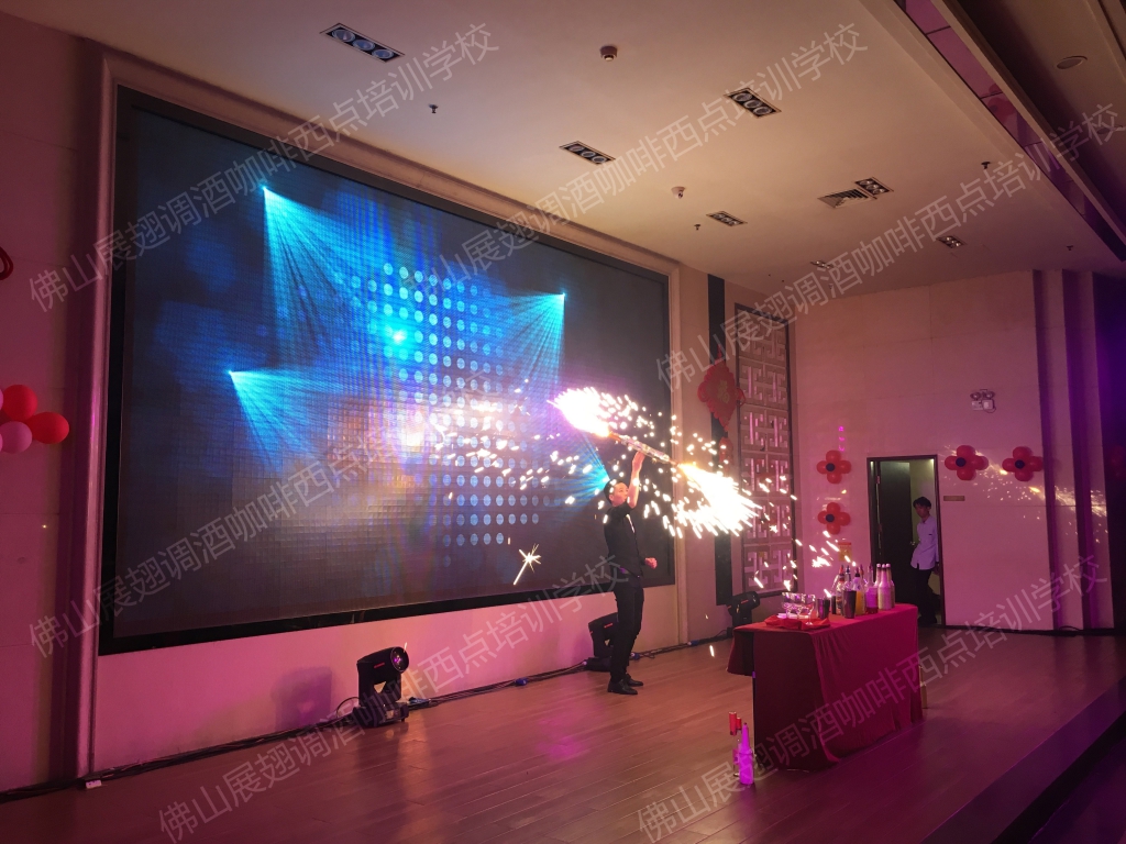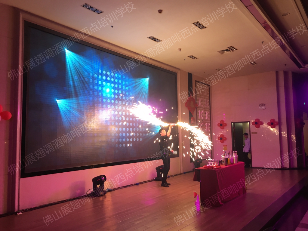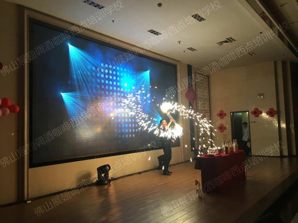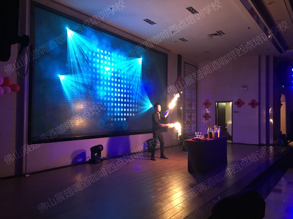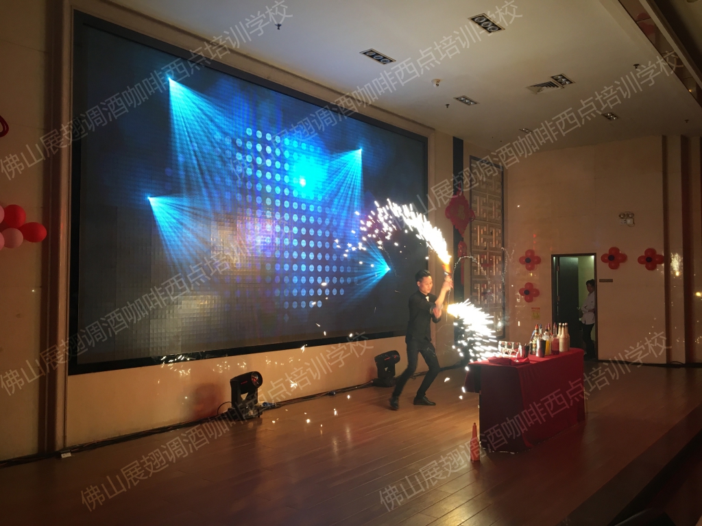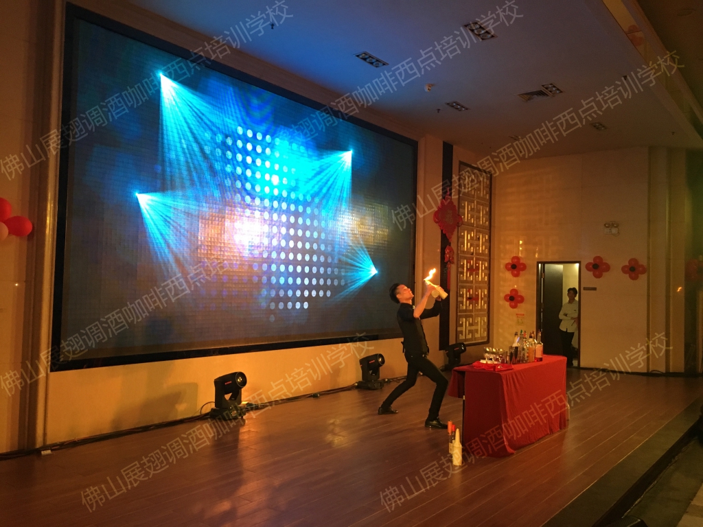 2018年1月23日,佛山展翅調酒咖啡西點培訓學校的調酒師朱歡洪受邀出席佛山南寶高盛有限公司的尾牙晚宴,并擔任現場的表演嘉賓。花式調酒表演是一門技術活,只有不斷得練習才能達到更好的效果,也只有在實踐中,才能檢驗自己的技能水平。接下來,讓我們一起感受一下當天晚上現場的氣氛吧。