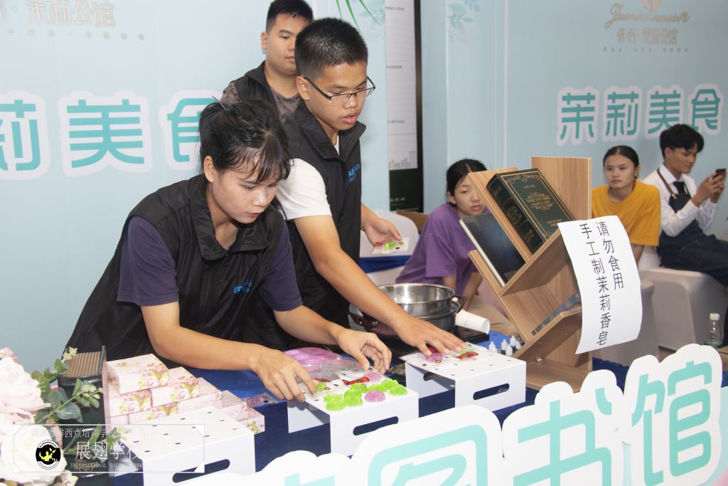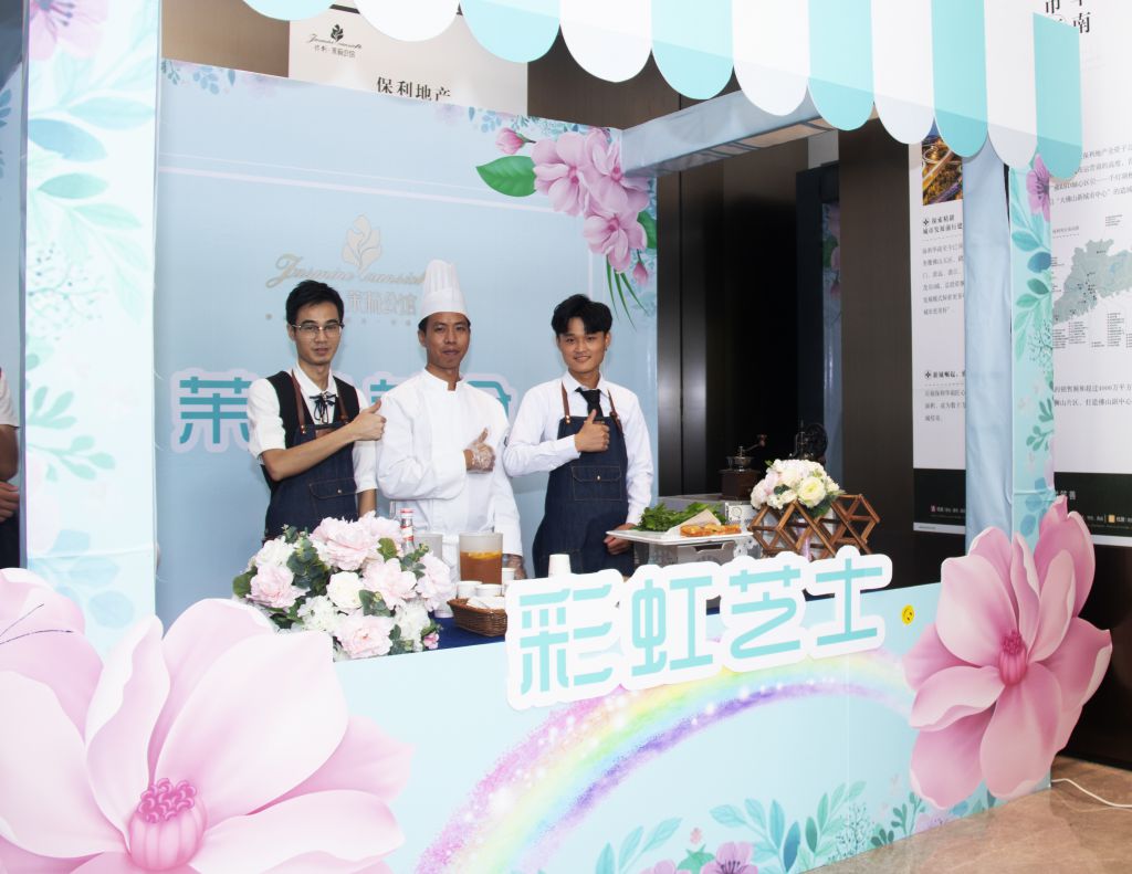 不斷受光顧,不斷有賓客嘗試,一側(cè)的小攤漸成全場(chǎng)焦點(diǎn),雖然都是來(lái)看樓盤,但是也都來(lái)享受美食與香氣!本次活動(dòng),佛山展翅咖啡調(diào)酒西點(diǎn)培訓(xùn)學(xué)校的西點(diǎn)學(xué)員受邀為全場(chǎng)嘉賓提供美味可口的面包,并在旁邊的香味圖書館展示并提供香味獨(dú)特的多種香皂,兩者都是細(xì)致的活兒,需要精密入微的心思才能做好。就好比一個(gè)音樂家,要想讓全場(chǎng)陶醉于自己的音樂,首先要自己完全投入到彈奏的曲子中,把“自我”放得很低,很謙卑,但是我的音樂藝術(shù)至高無(wú)上。做面包做香皂又何嘗不是如此呢?佛山展翅的西點(diǎn)學(xué)員都有著較高的職業(yè)素養(yǎng),現(xiàn)場(chǎng)的服務(wù)周到而且顯出獨(dú)卓的品質(zhì),給人一種茉莉花香沁入心脾般的舒適感,受到全場(chǎng)嘉賓好評(píng)!