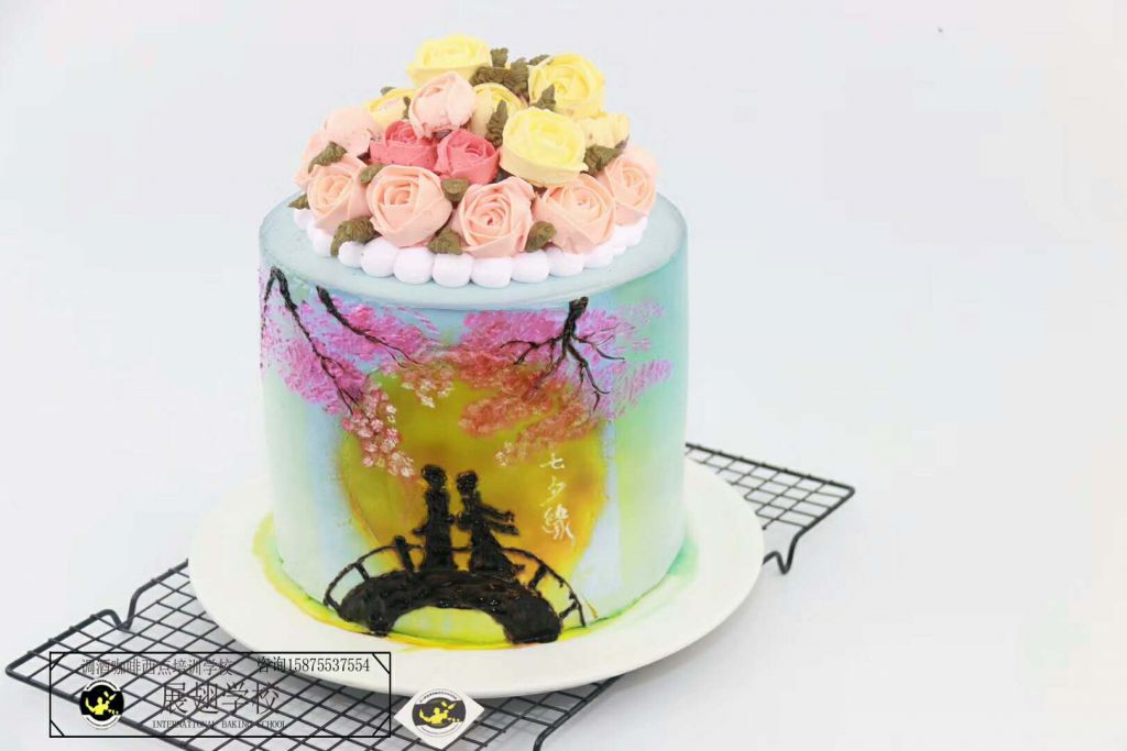 給人靈動飄忽感是另一種翻糖藝術達到的效果。這類藝術的創意來源于四季各種自然現象及鳥獸草木的變化。落日黃昏,夕陽染紅了岸邊的柳絲,遠處有房子,風輕輕吹,仿佛一切都飄在風里。同類的,還有裝飾的花式不那么繁雜,色彩多樣卻顯清淡,頗有靜雅之美。值得細細品味!