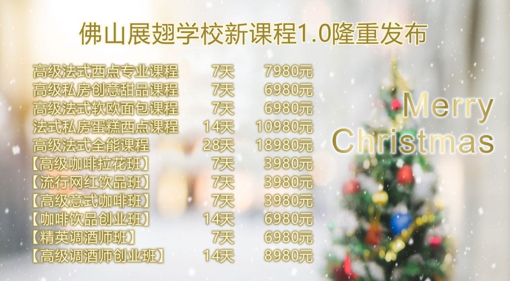 2. 圣誕節(jié)活動(dòng)期間報(bào)名或預(yù)報(bào)名法式新課程,享受8折優(yōu)惠并附送2天網(wǎng)紅飲品課程
