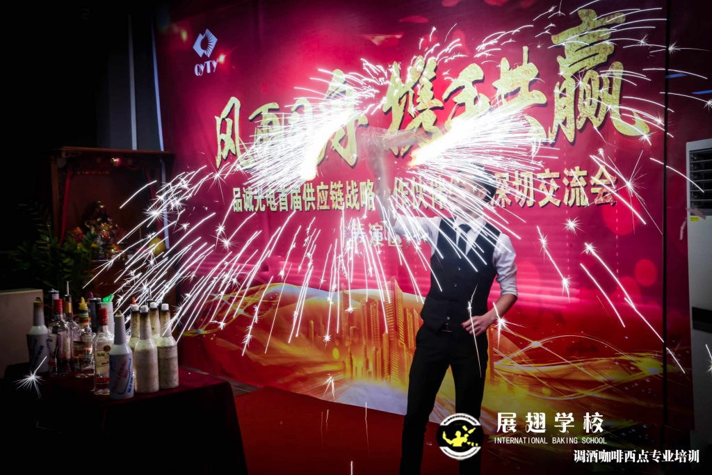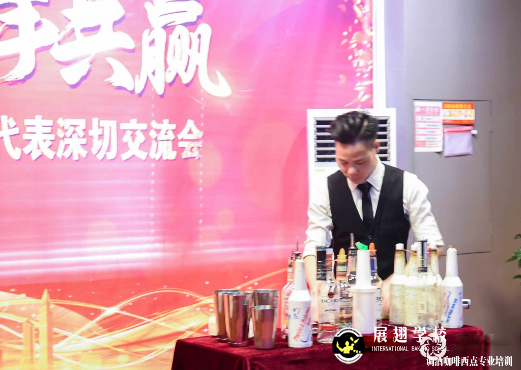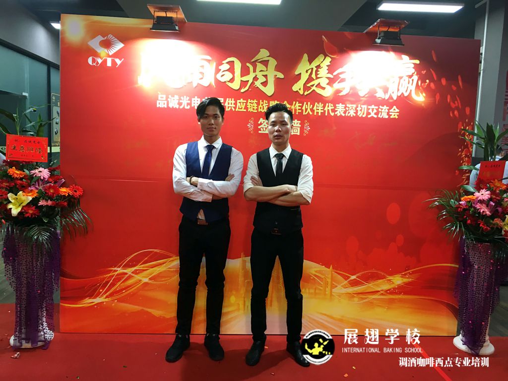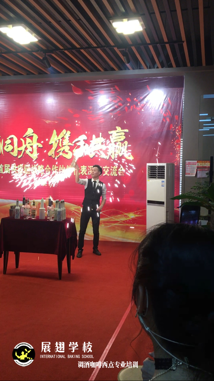 <佛山展翅調酒咖啡西點培訓學校>調酒師朱歡洪&謝克朗受邀出席中山品誠光電交談會,并擔任活動現場花式調酒演出嘉賓。如果你想成為一名優秀的花式調酒師,要不斷的實踐、學習、讓自己擁有更豐富的技能知識http://m.chinajindi.com