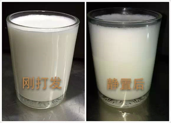 2、奶泡的細(xì)膩程度。(打發(fā)出的奶泡越細(xì)膩,則單個(gè)奶泡中所含空氣越少,密度高,浮力小;打發(fā)出的奶泡越粗糙,則單個(gè)奶泡中所含空氣越多,密度低,浮力大。如打發(fā)出的奶泡較為粗糙,奶泡會(huì)快速浮于牛奶表面,融合度較低;如打發(fā)出的奶泡較為細(xì)膩,奶泡浮于牛奶表面的速度會(huì)緩慢,融合度較高。)
