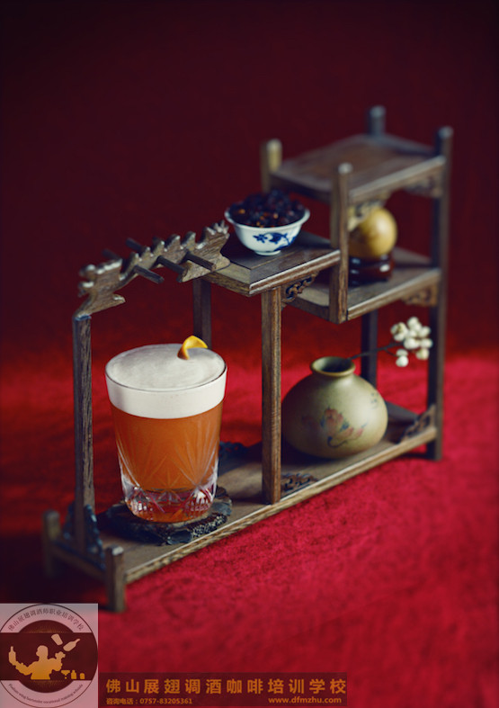 將除了蛋清之外的所有原料倒入搖酒壺,嘗味,看看是否要作調(diào)整,再加入蛋清。加冰搖15-20秒。濾入另一個(gè)調(diào)酒聽(tīng),以去除冰塊,然后加入過(guò)濾器彈簧搖酒,干搖10秒。以冰凍過(guò)的平底玻璃杯或高腳杯盛放,不加冰,以橙皮和3枚五味子裝飾。