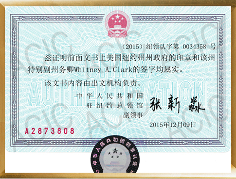 中國駐美國大使館紐約總領(lǐng)館的證明文件